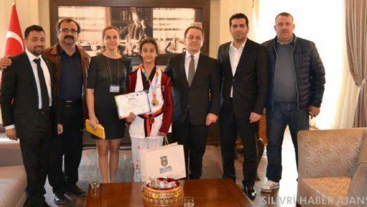 Avrupa Minikler Taekwando Şampiyonası'nda Avrupa 2.si olan Semina Özhan, Silivri Belediye Başkanı Özcan Işıklar'ı makamında ziyaret etti.