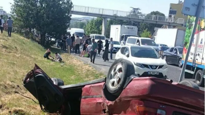 Büyükçekmece Kumburgaz'da E-5 karayolunda takla atan bir otomobil otobüs durağına daldı. Durakta bekleyen öğrencilerin de aralarında bulunduğu çok sayıda kişi yaralandı. Olay yerine çok sayıda sağlık ekibi sevk edildi. Ekiplerin yaralılara müdahalesi sürüyor.