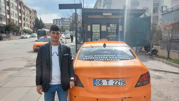Ankara'da bir taksi durağında çalışan Gökhan Yıldız, aracının arkasına 'Gün dayanışma günü. Depremzede ailelerine ücretsizdir' yazısı yazarak depremzedelere ücretsiz bir şekilde ulaşım hizmeti veriyor.