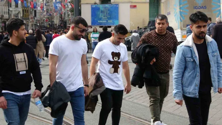 Ayrıca, sıcak havayı fırsat bilen birçok turist kafilesi de Taksim Meydanı'nda görüntülendi.