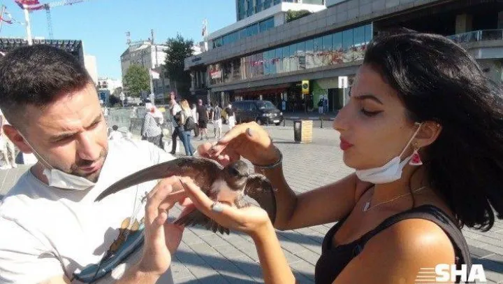 Taksim Gezi Parkı'nın yakınında bir vatandaş Ebabil kuşu buldu. Kuşun uçamadığını anlayan vatandaş yetkilileri arayarak yardım istedi.