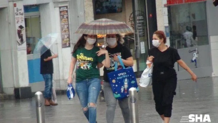 İstanbul Taksim Meydanı'nda da yağmur başladı. Bazı vatandaşların yağmura hazırlıksız yakalandığı görüldü.