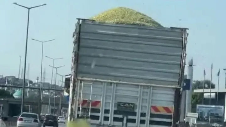 Sakarya'da kasasındaki yükü kapatmadan trafiğe çıkan kamyonda yüklü olan malzemeler yola savruldu. Yola savrulan malzemelerin, bazı sürücülerin görüş mesafesini düşürdüğü anlar cep telefonu kamerası ile kaydedildi. Kamyon sürücüsüne para cezası kesildi.