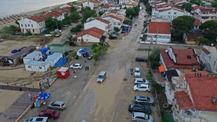 Edirne'de Keşan ilçesine bağlı Erikli beldesi sağanak sebebiyle sular altında kaldı.