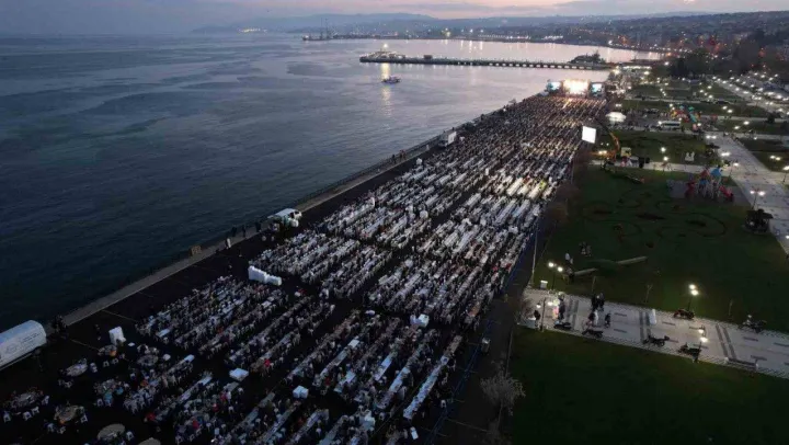 Tekirdağ'da Süleymanpaşa Belediyesi tarafından 10 bin kişilik dev iftar sofrası kuruldu. İftar dron ile havadan görüntülendi.