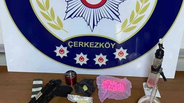 Tekirdağ İl Emniyet Müdürlüğü Çerkezköy İlçe Emniyet Müdürlüğü ekiplerince, Çerkezköy ilçesi Yıldırım Beyazıt Mahallesinde gece saatlerinde yapılan şok uygulamada şüphe üzerine bir araç durduruldu. Durdurulan araç içerisinde, araçtaki iki şahıs üzerinde ve şahısların ikametlerinde arama yapıldı. Yapılan aramada, 200 gram uyuşturucu madde, 127 adet uyuşturucu hap, tabanca ve 7 adet fişek, 1 adet hassas terazi, 1 adet öğütücü, 2 adet bong, 4 beher ve 11 bin 85 TL para ele geçirildi.