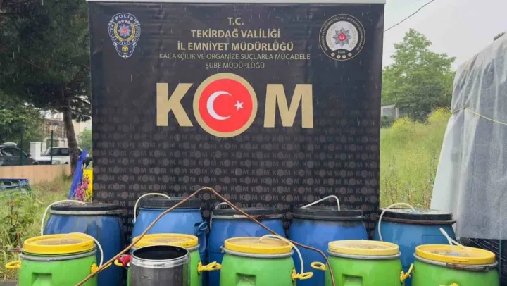 Tekirdağ'da düzenlenen operasyonda 870 litre sahte alkol ele geçirildi.