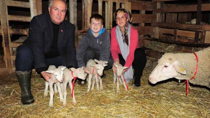 Tekirdağ'ın Malkara ilçesinde tek seferde beşiz doğuran koyun şaşırttı.