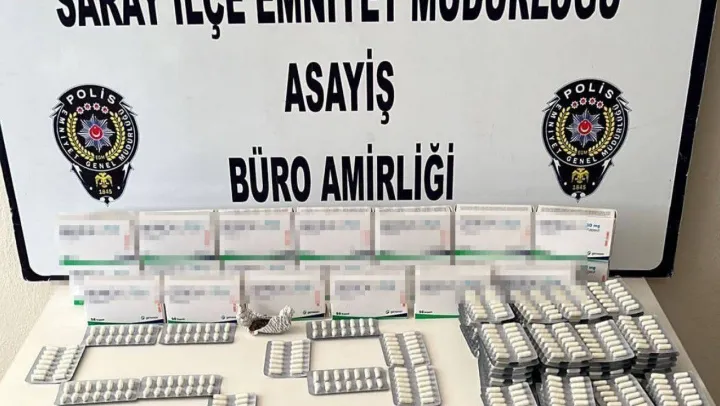 Olay, Saray ilçesinde meydana geldi. Alınan bilgilere göre, bir ihbarı değerlendiren Saray İlçe Emniyet Müdürlüğü Asayiş Bürosu ekipleri, Ayaspaşa Mahallesi'nde B.U. isimli şüphelinin evinde Saray Cumhuriyet Savcılığının talimatı çerçevesinde arama gerçekleştirdi. Yapılan aramada 20 kutu ve bir kutu içerisinde 56 adet, 1 adet yine aynı özelliklere sahip kutu içerisinde 52 adet olmak üzere toplam bin 172 adet yeşil kırmızı reçeteye tabi sentetik ecza maddesi olduğu değerlendirilen hap ile ikametin girişinde kağıda sarılı yeşil renkte esrar maddesi ele geçirildi. Olayla ilgili olarak gözaltına alınarak Yeni Mahalle Polis Karakoluna götürülen şüpheli B.U. işlemlerinin ardından çıkarıldığı mahkemece tutuklanarak cezaevine gönderildi.
