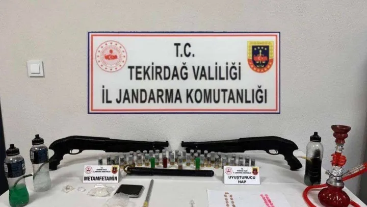 Tekirdağ İl Jandarma Komutanlığı ekiplerince, Süleymanpaşa ilçesine bağlı Yavuz Mahallesi'nde U.Ç ve A.Ö. isimli şahısların iş yeri ve ikametinde uyuşturucu madde sattığı duyumu alınması üzerine operasyon için düğmeye basıldı. KOM, İstihbarat Şube Müdürlükleri ile ve Kumbağ Jandarma Karakol Komutanlığı tarafından adrese düzenlenen operasyonda 46 gram metamfetamin, 33 adet extacy hap, 2 adet marka ve seri numarası olmayan ruhsatsız pompalı tüfek, 44 adet 12 cal. fişek ve 6 adet uyuşturucu madde kullanma aparatı ele geçirildi. Konuyla ilgili A.Ö isimli şüpheli gözaltına alınırken, U.Ç. isimli şüphelinin aranması sürüyor.
