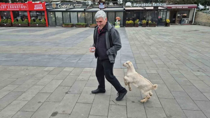 Tekirdağ'da çaycıyla dolaşan oğlak hayrete düşürdü