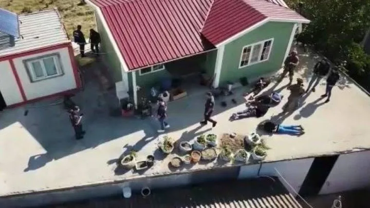 Tekirdağ İl Emniyet Müdürlüğü Narkotik Suçlarla Mücadele Şubesi ekipleri, Kırkkepenekli Mahallesi'nde bulunan bir çiftlik evine operasyon gerçekleştirdi. Operasyon anı dron ile görüntülendi.
