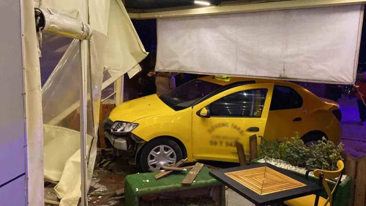 Tekirdağ'ın Çorlu ilçesinde otomobil ile motosikletin çarpıştığı kazada korku dolu anlar yaşandı. Kazada kontrolden çıkan ticari taksi önce bir yayaya ardından köfteci dükkanına girdi. Dehşete düşüren kaza anı kameraya yansıdı.