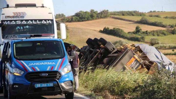 Tekirdağ'da devrilen tırdan burnu bile kanamadan çıktı