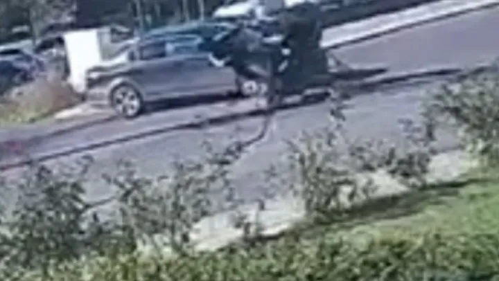 Tekirdağ'ın Çorlu ilçesinde otomobille çarpışan motosiklet, kontrolden çıkarak lokantanın bahçesine girdi. Motosiklet sürücüsünün yaralandığı kaza kameraya yansıdı.