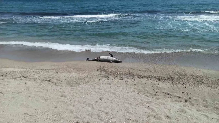 Tekirdağ'ın Süleymanpaşa ilçesinde kıyıya vuran ölü yunus, vatandaşları üzdü.