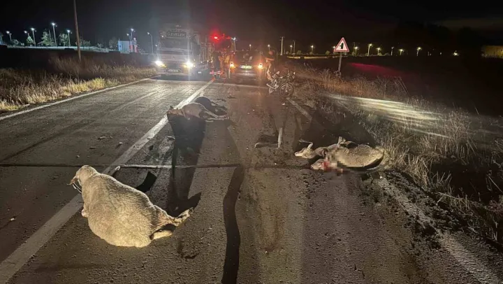 Tekirdağ'da otomobil koyun sürüsüne çarptı: 10 koyun telef oldu