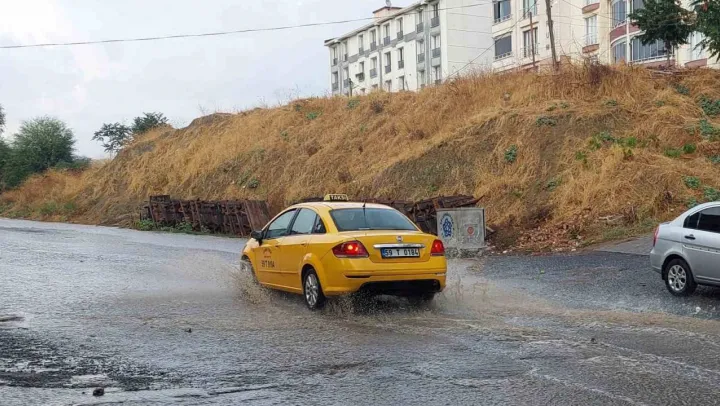 Tekirdağ'da şiddetli yağış 10 dakikada sokakları dereye dönüştürdü