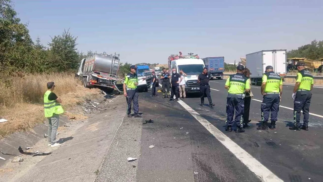 Tekirdağ'ın Ergene ilçesi Avrupa Otoyolu üzerinde, süt kamyonu ile otomobilin karıştığı trafik kazasında 4 kişi yaşamını yitirdi.
