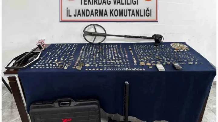 Tekirdağ İl Jandarma Komutanlığınca yürütülen istihbari çalışmalar sonucu, Çorlu ilçesi Nusratiye Mahallesi'nde M.C., İ.C. ve D.E. isimli şüphelilerin ikamet adresleri ile araçlarında eş zamanlı operasyon gerçekleştirildi. Tekirdağ İl Jandarma Komutanlığına bağlı İstihbarat Şube Müdürlüğü, Ergene Velimeşe Jandarma Karakol Komutanlığı ve Ulaş Jandarma Karakol Komutanlığı ekiplerinin ortaklaşa yürüttüğü operasyonda yapılan aramalarda, tarihi eser niteliği taşıyan toplam 1014 adet sikke ve obje, 3 adet dedektör ile tarihi eser objeleri tartmak için kullanıldığı değerlendirilen 1 adet hassas terazi ele geçirildi.