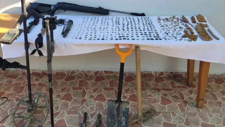 Ayrıca, 1 adet cep telefonu, 3 adet dedektör, 432 adet tarihi eser niteliğinde obje ve sikke, 1 adet tahkim edevat kürek, 1 adet kazma, 2 adet el küreği, 1 adet dürbün, 1 adet tabanca, 7 adet tabanca fişeği, 1 adet havalı tüfek ve 1 adet kama da ele geçirilenler arasında yer aldı.