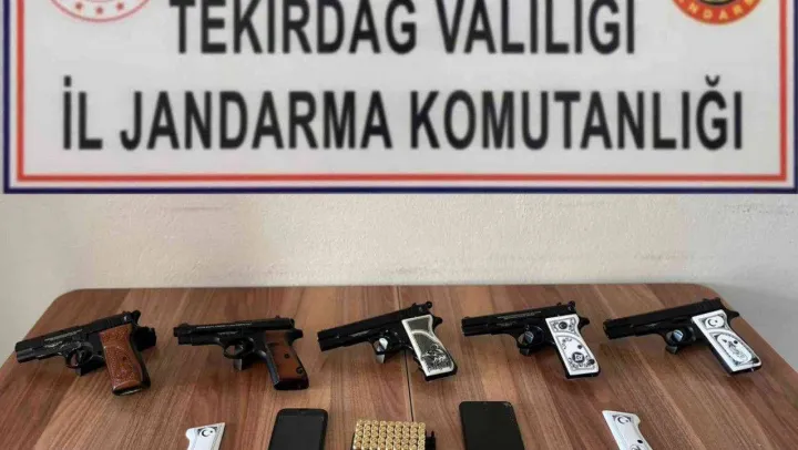 Tekirdağ İl Jandarma Komutanlığı ekiplerinin yaptığı operasyonda durdurulan araç içerisinde 5 adet ruhsatsız tabanca ve tabancalara ait fişekler ele geçirildi.