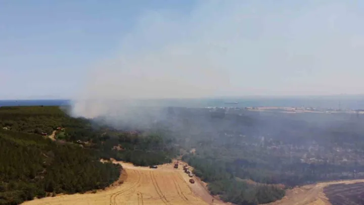 Tekirdağ'ın Şarköy ilçesine bağlı Kızılcaterzi Mahallesi yakınlarındaki ormanlık alanda çıkan yangın kontrol altına alınmaya çalışılıyor.