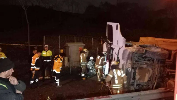 TEM Otoyolu'nda hafriyat kamyonu devrildi: 1 ölü, 1 yaralı