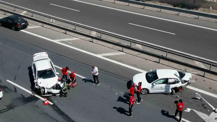 Kocaeli TEM Otoyolu'nda aynı bölgede iki ayrı kaza meydana geldi. Kazanın şiddetiyle araçlar kullanılamaz hale gelirken trafik durma noktasına geldi.