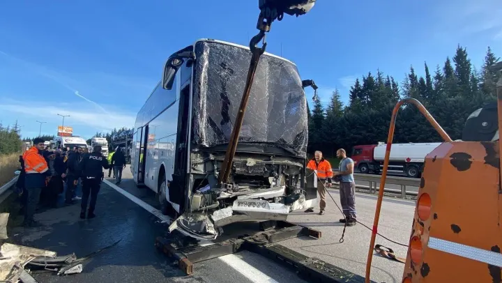TEM Otoyolu'nda yolcu otobüsü tırla çarpıştı, yaralılar var