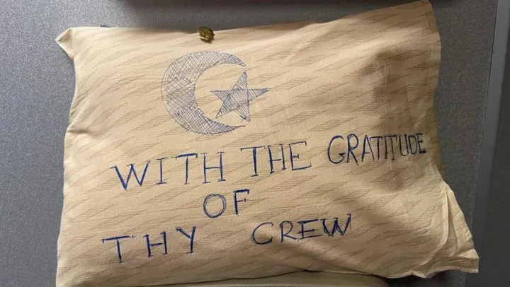 THY'nin TK1357 sefer sayılı İstanbul-Madrid uçağında, deprem bölgelerine yardım için gelen ve ülkelerine dönen İspanyol arama kurtarma ekibi de yer aldı. Uçaktaki kokpit ve kabin ekibi, teşekkür amacıyla yastığın bir yüzüne ay-yıldız çizip ''With the gratitude of Cabin Crew'' yazdı. Diğer yüzüne ise kabin ve kokpit ekibinin isimleri yazılıp bröveleri takılarak, İspanyol arama-kurtarma ekibine hediye edildi. İspanyol arama kurtarma görevlileri, kabin ekibinin jesti karşısında duygu dolu anlar yaşadı.