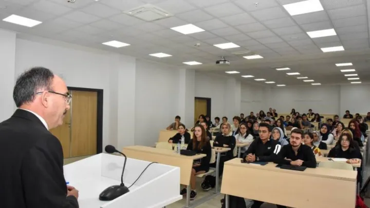 Bilecik Şeyh Edebali Üniversitesi Rektörü Prof. Dr. Şükrü Beydemir tıp fakültesi öğrencilerine ilk dersi verdi.