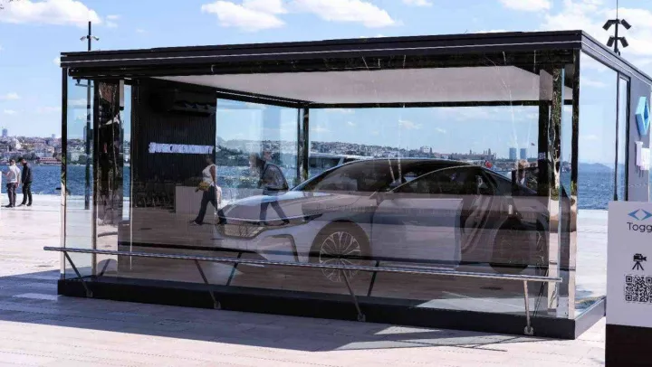 TOGG teknolojilerinin sergilediği ‘Konsept Akıllı Cihazı' Ayasofya ve Sultanahmet manzarası eşliğinde Galataport'ta görücüye çıktı. Daha önce ABD'nin Las Vegas şehrinde düzenlenen CES fuarında sergilenen otomobil, tanıtım amaçlı İstanbul'da sergileniyor. 2023 yılının Mart ayında banttan inecek olan yerli ve milli otomobil TOGG'un sedan modeli vatandaşların ilgi odağı oldu.