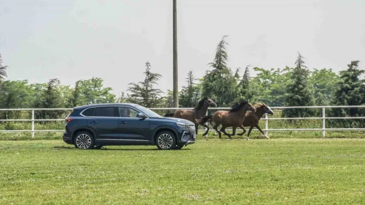 Türkiye'nin yerli ve milli otomobili Togg, yetiştirdiği yarış atlarıyla dünyaca ünlü olan TİGEM'in Karacabey Harası'nda şampiyon atlarla yarıştı.