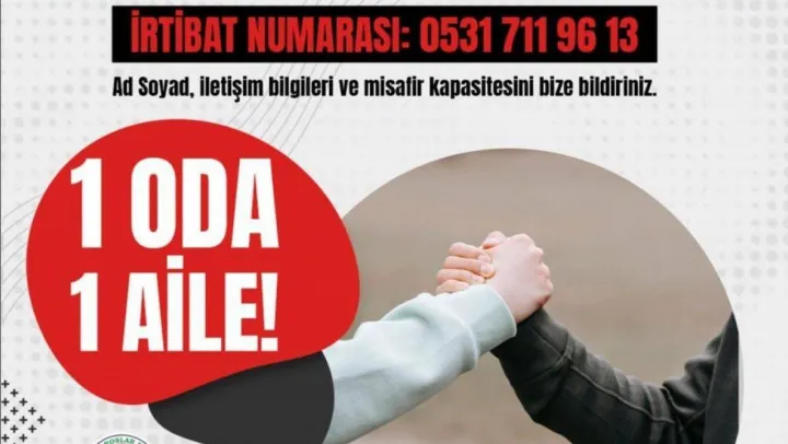 Evlerinde, depremzedeleri misafir etmek isteyen vatandaşların, adı-soyadı, iletişim bilgileri ve misafir kapasitesini 0531 711 96 13 numaralı telefonla iletişime geçerek bildirebilecekleri kaydedildi.