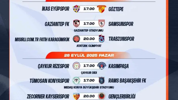 Trendyol Süper Lig'de 7-16. haftalar arasında oynanacak müsabakaların programı belli oldu. TFF'nin sitesinden yapılan açıklamaya göre, Süper Lig Kulüpler Birliği Vakfı'nın müsabaka saatlerinde değişiklik yapılması yönündeki başvurusu üzerine; Türkiye Futbol Federasyonu, Süper Lig Kulüpler Birliği Vakfı ve yayıncı kuruluş arasında yapılan çalışmalar neticesinde, 2025-2026 sezonunda oynanacak Trendyol Süper Lig Mehmet Ali Yılmaz Sezonu mücadelelerinde uygulanacak maç saatleri 14.30, 17.00 ve 20.00 olarak belirlendiği bildirildi.