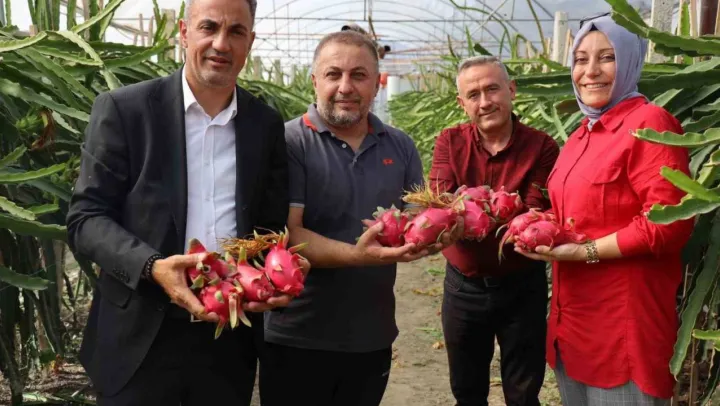 Kaktüsgiller familyasına ait bir meyve olan ve 'pitaya' ismiyle de bilinir ejder meyvesinin ilk hasadı yapıldı.