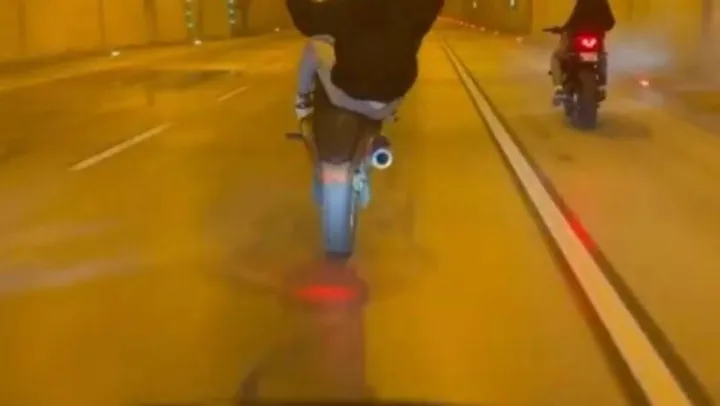 Şişli Bomonti-Dolmabahçe Tüneli'nde motosikletle ilerleyen 4 kişilik bir arkadaş grubu, trafiği ciddi şekilde tehlikeye attı. Sürücülerden birisi motosikletin önünü havaya kaldırarak tek tekerlek gösterisi yaptı. Motosikletin önünü kaldırarak metrelerce giden sürücüyü başka bir motosikletli arkadaşı cep telefonu kamerasıyla kayıt altına aldı. Motosikletli gençlerin tehlike saçtığı o anlar sosyal medya hesaplarından da paylaşıldı.