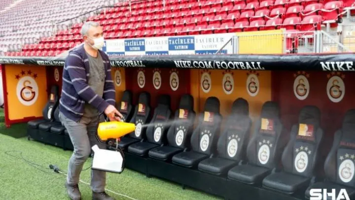 Süper Lig'in 11. haftasında Galatasaray ile Hatayspor mücadelesi öncesinde Türk Telekom Stadyumu'nda korona virüs tedbirleri kapsamında dezenfeksiyon işlemleri tamamlandı.