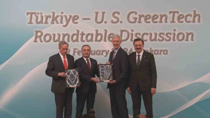 Türkiye ve Amerika Birleşik Devletleri'nin (ABD) Yeşil Teknoloji heyetleri, Türkiye Odalar ve Borsalar Birliği'nin (TOBB) ev sahipliği yaptığı Greentech Tech Heyeti Çalışma Yemeği etkinliğiyle bir araya geldi. Türkiye ve ABD arasındaki ekonomik ve ticari ilişkilerin ele alındığı toplantıda, iki ülke arasındaki ticaret hacminin 2023 yılında rekor kırarak 33 milyar dolara ulaştığı belirtildi. Yükselişin devam ettiği kaydedilirken, ikili ticaret hedefinin gelecek yıllarda 100 milyar Dolar seviyesine ulaşması olduğu ifade edildi. Öte yandan Yeşil Teknoloji misyonunun bu hedefe ulaşmada önemli bir katkı sunacağı toplantıda vurgulandı.
