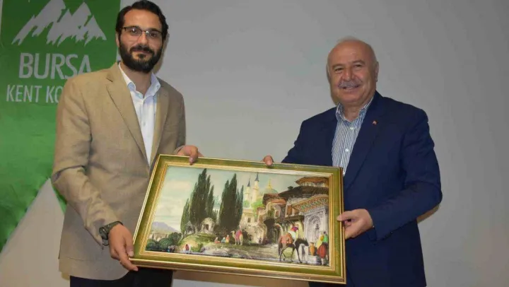 Bursa Kent Konseyi Başkanı Şevket Orhan da panelin ardından günün anısına Kültür ve Turizm Bakanlığı, Kültür Varlıkları ve Müzeler Genel Müdür Yardımcısı Dr. Yahya Coşkun'a tablo hediye etti.