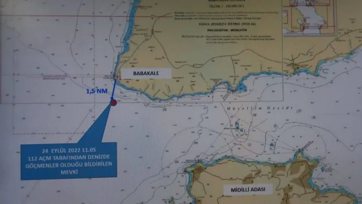 24 Eylül 2022 tarihinde saat 11.05'te, Çanakkale ili Ayvacık ilçesi Babakale 1.5 deniz mili (yaklaşık 3 km) güneyinde seyir halindeki bir balıkçı teknesi tarafından deniz yüzeyinde düzensiz göçmenlerin tespit edilmesi üzerine harekete geçen T.C. İçişleri Bakanlığı Sahil Güvenlik Komutanlığına bağlı ekipler bölgeye intikal ederek 7 çocuk, 15 kişiyi sağ olarak kurtardı. Hayatlarını kaybeden 4'ü çocuk 6 düzensiz göçmenin ise cansız bedenine ulaşıldı. Düzensiz göçmenlerden alınan bilgiler doğrultusunda 5.5 yaşlarında sarı montlu bir çocuğun daha kayıp olduğu belirlendi. Bunun üzerine bölgeye 1 sahil güvenlik helikopteri, 3 sahil güvenlik botu ve 1 dron gönderilerek küçük çocuk tüm bölge taranarak aranmaya başlandı. Arama faaliyetlerine hava karardıktan sonrada botlarla devam edileceği bildirildi.