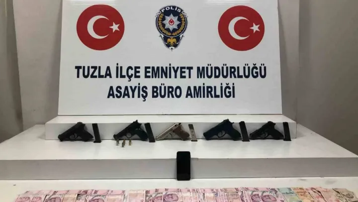 Tuzla'da bulunan bir ikamette silah ticareti yapıldığının tespit edilmesi üzerine polis ekipleri çalışma başlattı. Çalışmalar kapsamında 14 Aralık tarihinde B.U.U (24) gözaltına alındı. Adreste yapılan aramalarda 5 ruhsatsız silah ve silah ticaretinden elde edildiği düşünülen 6 bin 590 TL ele geçirildi.