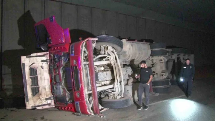 Tuzla'da hafriyat taşıyan alkollü kamyon sürücüsü virajı alamayarak önce tünel duvarına vurdu ardından yan yattı. Kaza da 1 kişi hafif şekilde yaralandı.