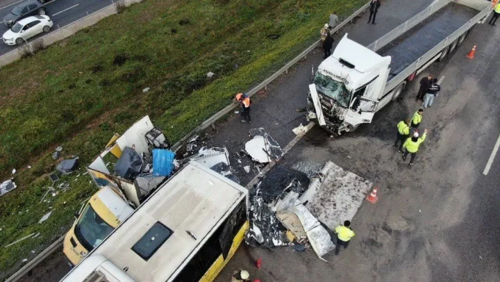 Tuzla TEM otoyolunda tır, arıza yapan İETT otobüsü ve yol bakım aracına çarptı: 2 ölü