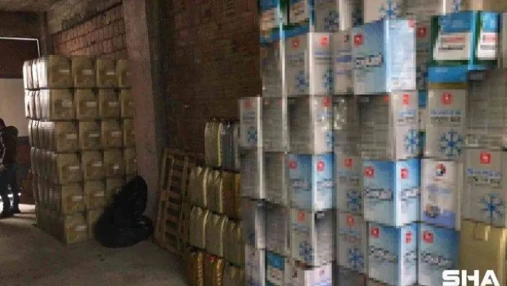 Şahısların kullandıkları depolarda yapılan aramalarda ise 2 adet boş, 4 adet dolu toplam 6 adet bin litrelik plastik tank içerisinde 4 ton atık yağ, bin 909 adet çeşitli marka ibareli boş yağ tenekesi ve bidon, 3 adet bir litrelik bidon içerisinde 3 litre atık yağ, 2 adet 20 litrelik bidon içerisinde 40 litre atık yağ, bir adet 197 litre yağ dolu varil, bir adet atık yağları arıtma ve dolum yapma makinesi, çeşitli firmalara ait olan çok sayıda barkot numarası ve etiket, bir adet yağ bidonlarının ağız kısmını kapatmaya yarayan aparat, bir adet silikon ve etiket yapıştırmada kullanılan makine, bir adet yağ arıtma ve dolum yapmada kullanılan makine olmak üzere toplam 4 ton 240 litre atık yağ ele geçirildi.