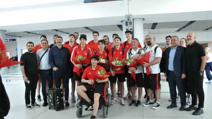 Macaristan'ın Debrecen kentinde düzenlenen FIBA 19 Yaş Altı Erkekler Dünya Kupası'nın üçüncülük maçında ABD'yi 84-70'lik skorla yenerek bronz madalya kazanan Türkiye U19 Erkek Basketbol Milli Takımı, yurda döndü. Milli takım kafilesi, saat 12.30'da İstanbul Havalimanı'na geldi. Ay-yıldızlı sporcular, burada basketbol federasyonu yetkilileri tarafından çiçeklerle karşılandı.