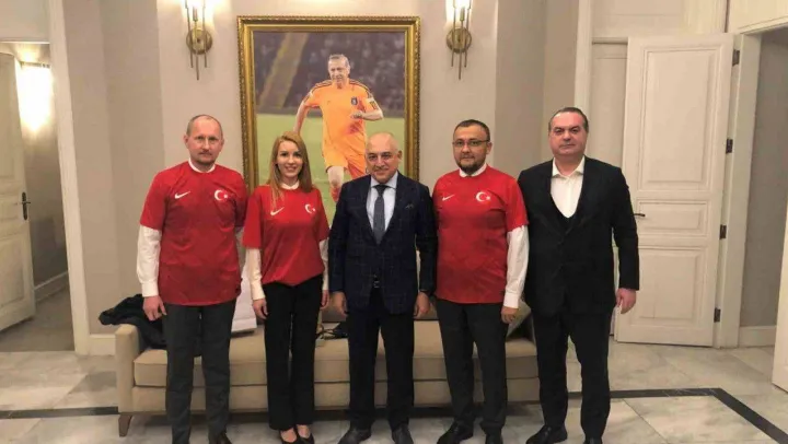 Ukrayna Büyükelçisi Vasly Bodnar, eşi Kateryna Bodnar ve Ukrayna İstanbul Başkonsolosu Roman Nedilsky ile birlikte Türkiye Futbol Federasyonu Başkanı Mehmet Büyükekşi'ye nezaket ve taziye ziyaretinde bulundu.