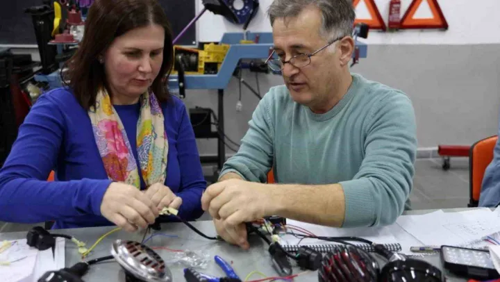 Sanayi ve teknolojinin başkenti Kocaeli'de açılan otomotiv kursu, bir yandan sektörün kanayan yarası haline gelen ara elaman yetişmesine katkıda bulunurken, diğer yandan vatandaşların kendi araçlarındaki arızaya müdahale etmelerini kolaylaştırıyor. Aracında meydana gelebilecek arızaya hızlı müdahale için kursa katılan Murat Yılmazer de Ukraynalı eşi ile aynı sırayı paylaşıyor.
