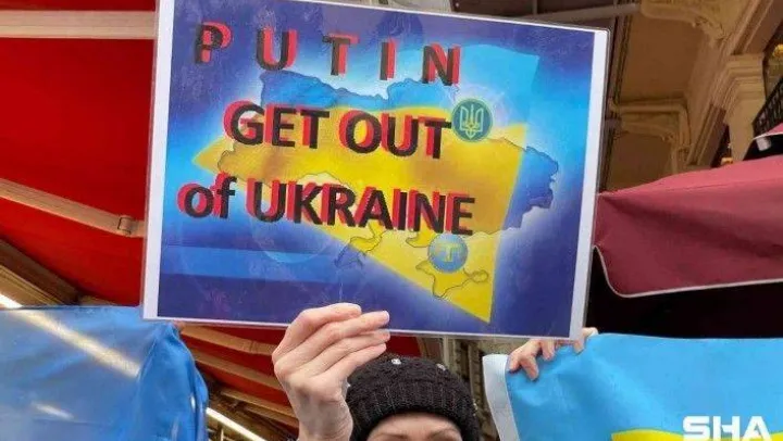 İstanbul'da yaşayan Ukraynalılar, sabah saatlerinde Beyoğlu'nda bulunan Rusya Başkonsolosluğu önünde toplandı. Rusya lideri Vladimir Putin aleyhinde sloganlar atan grup, 'Savaşa hayır' yazılı pankartlar taşıdı. Polisin yoğun güvenlik önlemleri aldığı eylem devam ediyor.